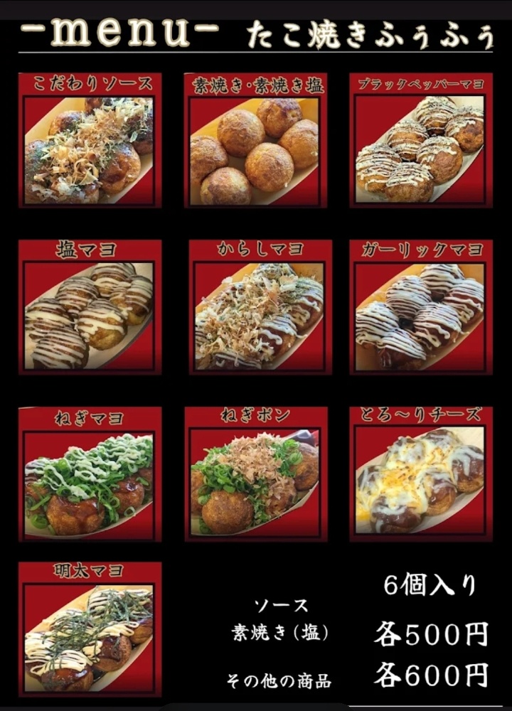 たこ焼き全品をお買い得価格にて販売しています✨開催日はSNSで更新してますのでよろしくお願い致します